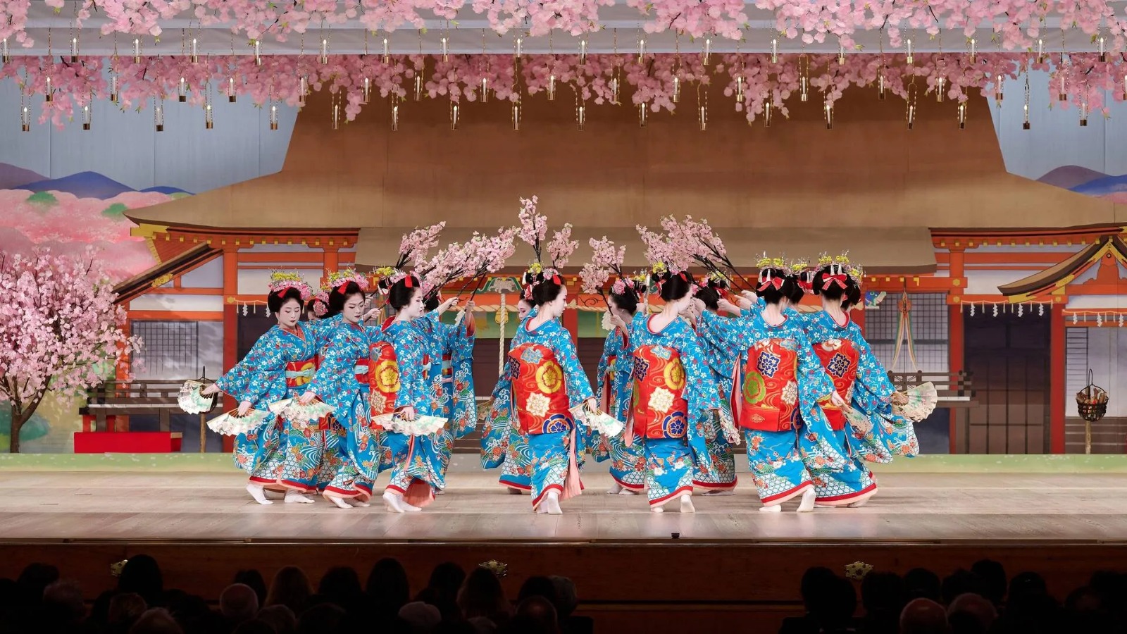 Представление включает музыку на сямисэн, пение и перкуссию, всё вживую, идеально синхронизировано с танцами гейш и майко. Часовое шоу начинается с большого ансамблевого танца, где все танцовщицы появляются в одинаковых светло-голубых кимоно.