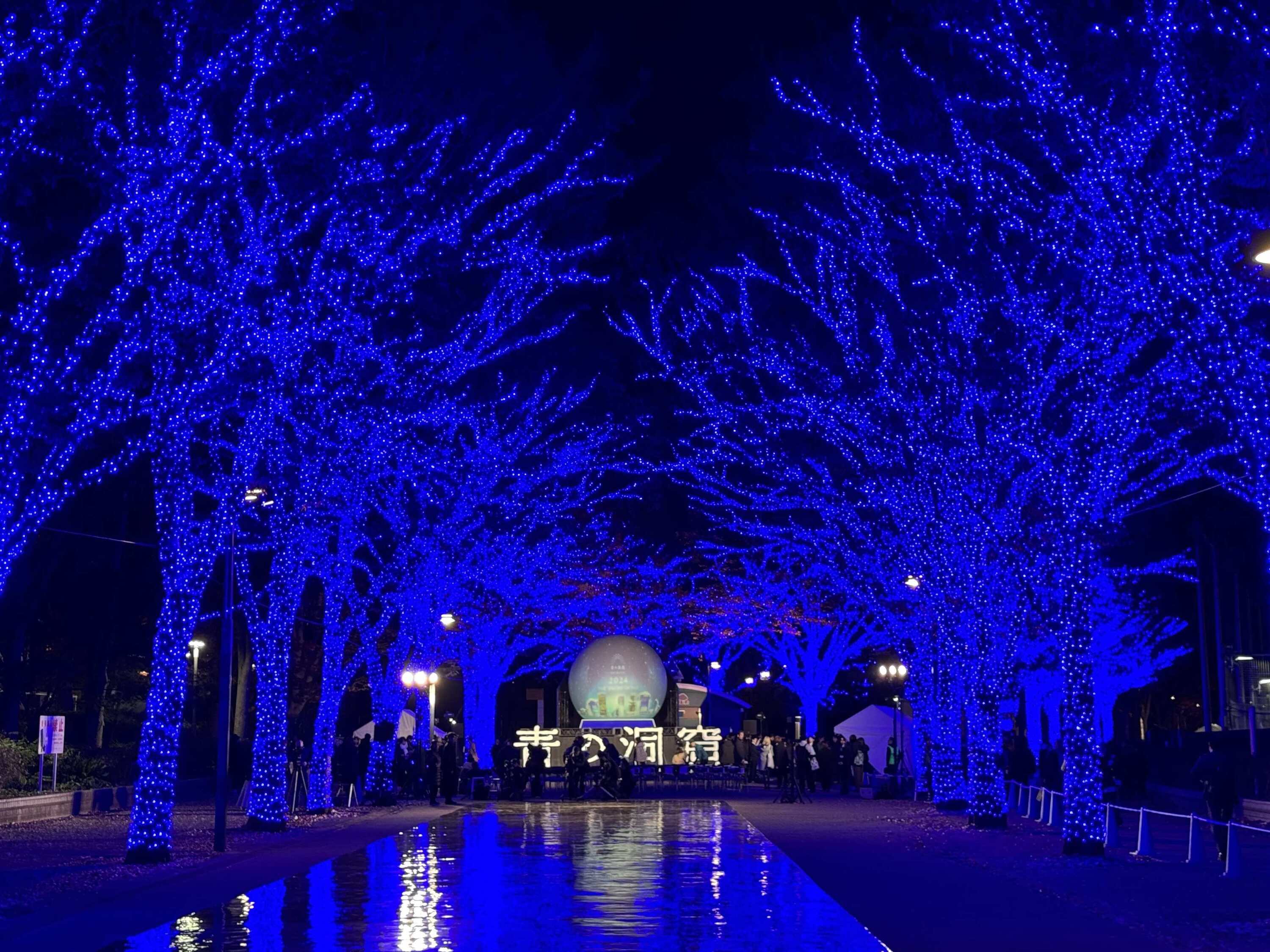 Эта захватывающая иллюминация была огромным хитом, когда впервые была установлена вдоль реки Мэгуро в 2014 году. С тех пор она стала ежегодным событием, и в 2016 году она вернулась в район Сибуя, где снова окрасила аллею деревьев, ведущую к парку Ёёги, в фантастический синий свет до Рождества.Это световое шоу растягивается на 900 метров вдоль Коэн-дори и площади мероприятий Ёёги-парка и состоит из около 500 000 синих светодиодов. Огни также отражаются от земли, создавая атмосферу погружения. В конце туннеля стоит гигантский надувной снеговик, украшенный праздничной проекцией, вдохновлённой темой «Рождества и Сибуи».