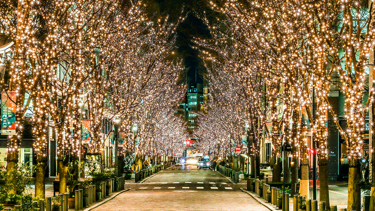 Один из самых популярных световых шоу в Токио - иллюминация на Омотесандо. В этом году улица длиной 1 км, покрытая 900 000 светодиодами цвета шампанского, будет украшать деревья зельковы между перекрёстками Дзингумае и Омотесандо. Пока вы в районе, не забудьте заглянуть в Omotesando Hills, чтобы увидеть потрясающую рождественскую ёлку из кристаллов (с 11 ноября по 25 декабря), состоящую из 1000 сверкающих элементов.