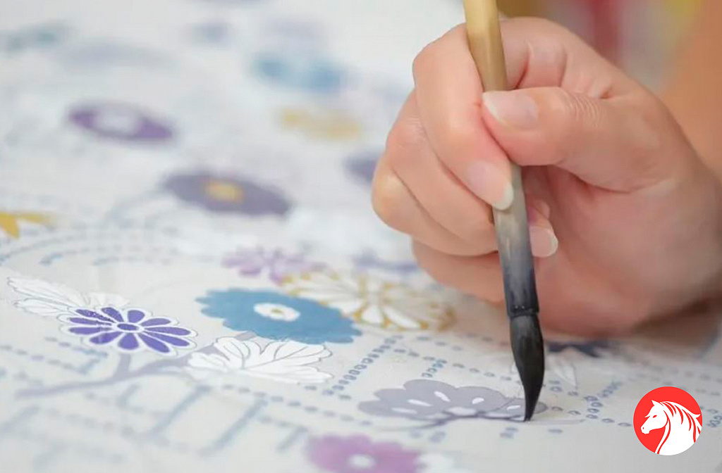 Юдзэн - это особая техника нанесения рисунков. Главная отличительная черта техники - это четкие белые границы между элементами рисунка разных цветов, которые называются "итомэ". Получаются они в процессе окрашивания.