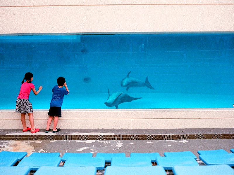 Начнется наша экскурсия с посещения океанариума Тюрауми. Он занимает первое место в мире по толщине и величине акрилового стекла экрана аквариума. Также парк известен тем, что это единственное место в мире, где разводят китовых акул и мант (морской дьявол). Более того, здесь впервые в мире стали выращивать кораллы на плантациях искусственным путем.